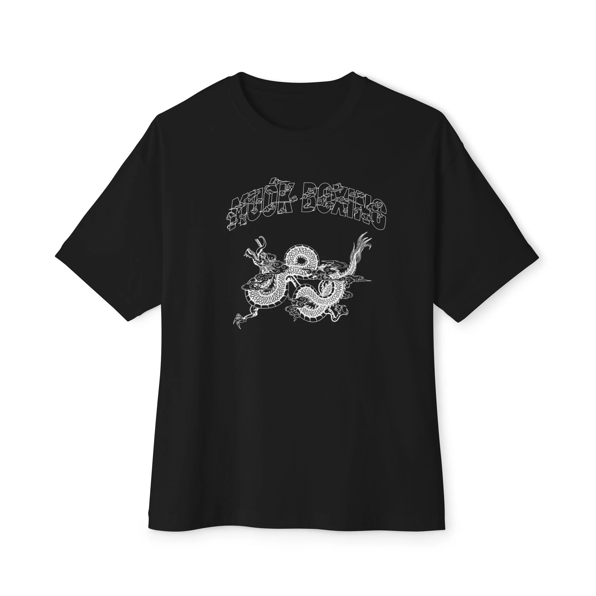 A relaxed, oversized tee that wears like a quiet anthem for those who like their style with an edge. The soft black fabric frames a faded, hand-drawn dragon-and-sun emblem at the chest — an inked, slightly weathered look that feels lived-in from the first wear. It drapes with dropped shoulders and a roomy silhouette, sliding easily over jeans, layered under a leather jacket, or thrown on after morning coffee for low-effort confidence. This tee speaks to people who collect late-night drives, cassette playlists, and worn-in denim — a subtle statement piece that ages gracefully and becomes more personal with every wash.