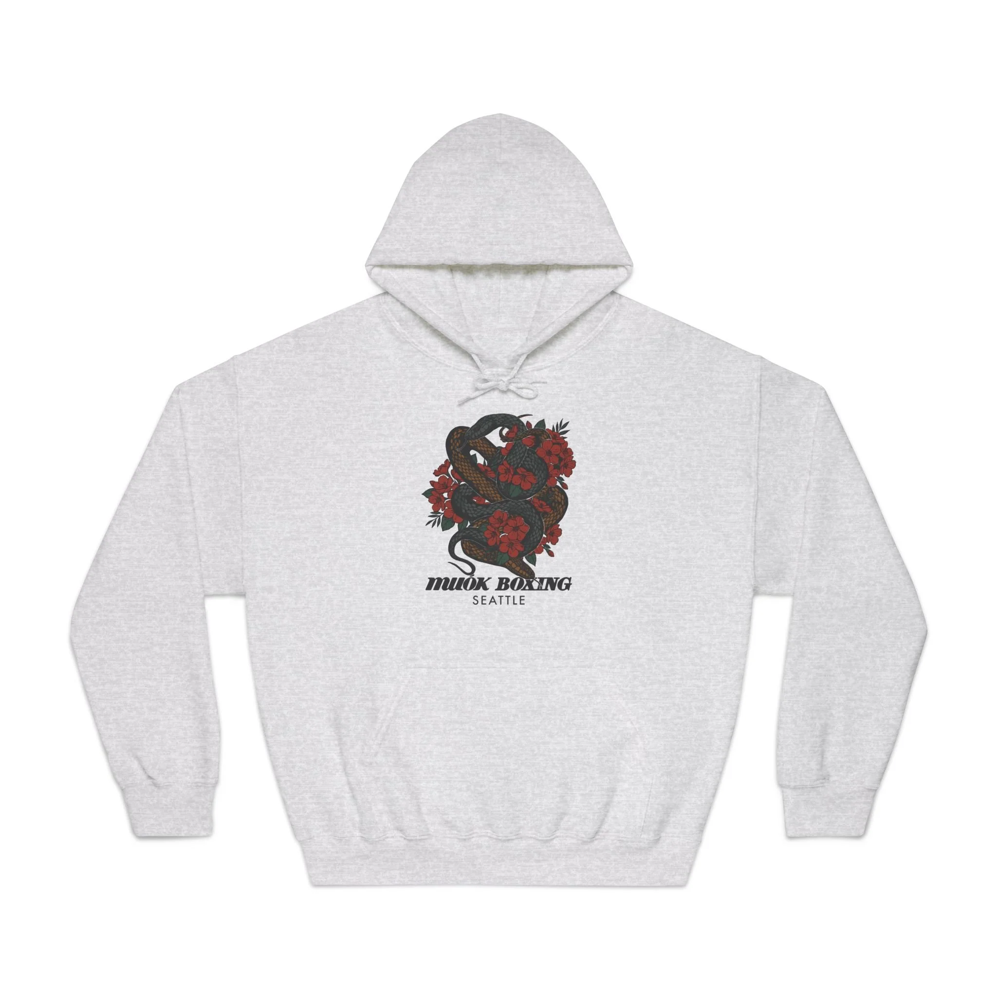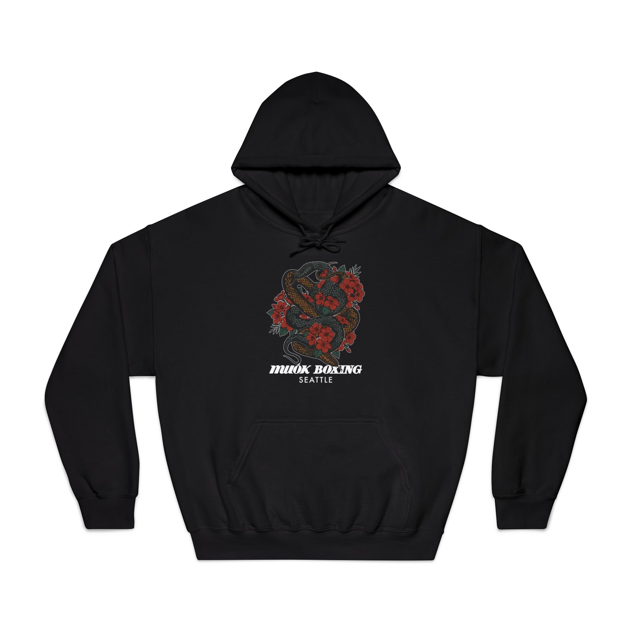 This cozy hooded sweatshirt folds quiet confidence into every stitch. Thick, medium-heavy fabric and a structured hood shelter you from damp city air while a muted floral-and-script design on the chest adds a low-key, artful edge. Wear it on slow mornings at the coffee shop, late-night walks through damp streets, or while putting the finishing touches on a weekend project — it layers easily, feels substantial without weighing you down, and stretches back to shape every time. The classic fit and tucked cuffs keep the silhouette clean while a tear-away label removes irritation, so the focus stays on comfort and the small, expressive graphic that does the talking.